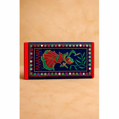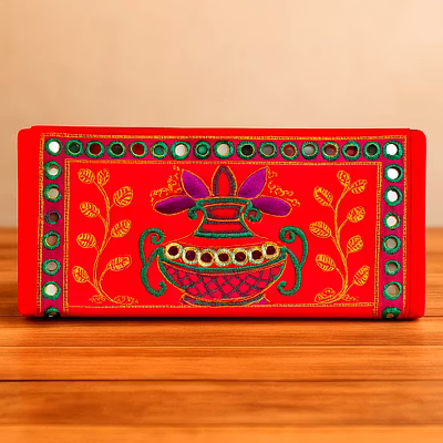This red clutch purse is an elegant and functional accessory designed for wholesale, bulk supply, and export markets. Crafted using velvet and cotton materials, the clutch features a slim fold-over design with decorative mirror work, making it suitable for formal and lifestyle occasions. Its compact structure offers organized storage for daily essentials while maintaining a refined appearance. Designed for retailers and importers, this clutch purse combines visual appeal with practical usability for diverse consumer needs.