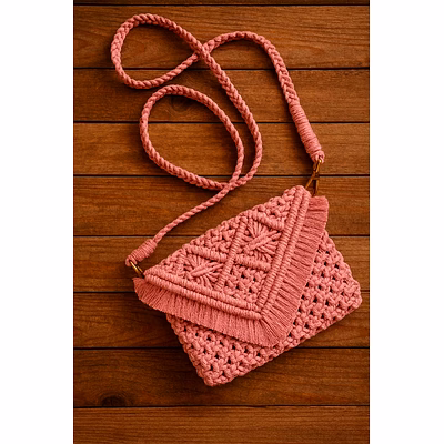 This pink macramé crochet bag is a handcrafted cotton crossbody purse developed for wholesale, bulk supply, and export markets. Carefully handwoven by skilled artisans using traditional macramé techniques, the bag is made from 100% natural cotton cord and finished with detailed knot patterns that enhance texture and strength. Its compact crossbody structure offers everyday practicality while supporting sustainable and eco-conscious product requirements. Designed for fashion retailers and international importers, this crochet purse combines artisanal appeal with functional storage.